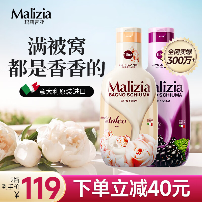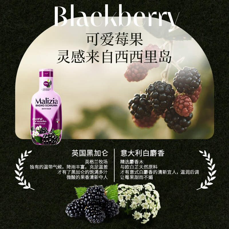 玛莉吉亚(MALIZIA)沐浴露男女通用香味持久1000ml*2套装(木质香+莓果香)原装进口价格:159.00元!