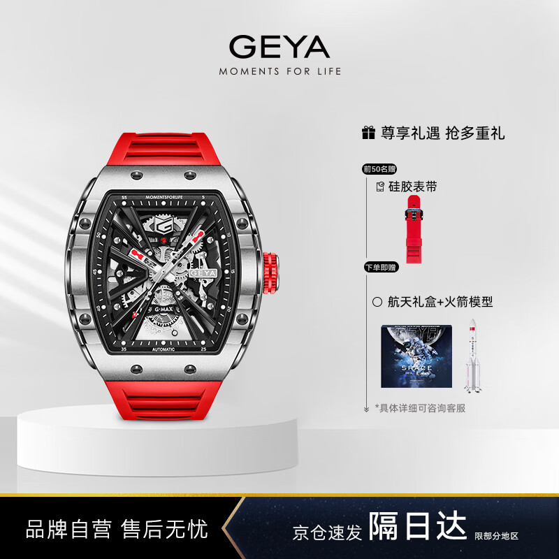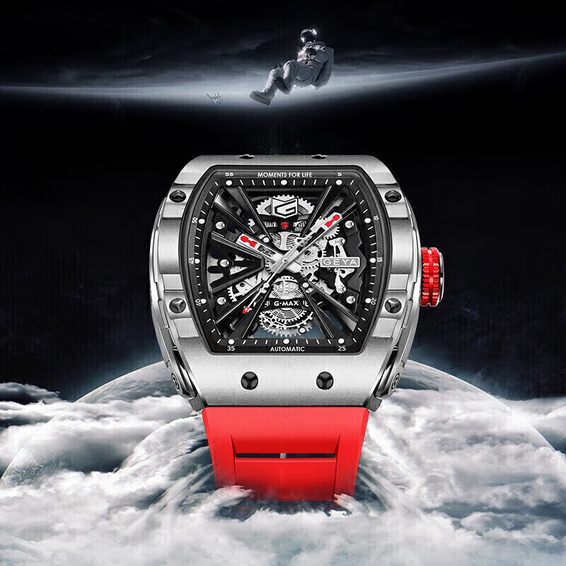 格雅(GEYA)手表男酒桶型全镂空机械品牌男士国表赤焰火星新年礼物JD8253价格:2309.00元!