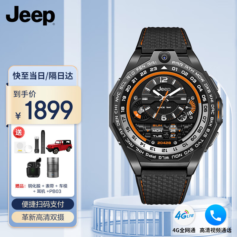 JEEP吉普黑骑士电话智能手表男运动4G插卡上网运动微信节日礼物F-X3价格:2099.00元!