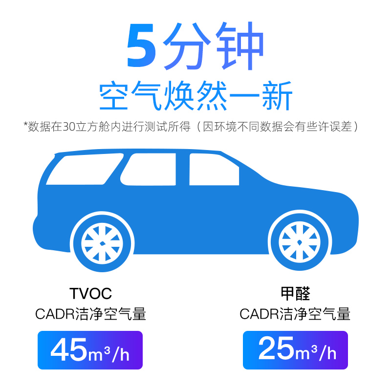 3、净化效果:净化效果非常的快,开了一会儿就能看到车内空气质量变好,很不错风力大小:风力挺大的,也很稳定,自动变速也很不错外形外观:简约低调,安装很方便,电源线足够长,安装在前面后面都可以其他特色:运行的声音很小不太影响开车或者休息,还是很好的!