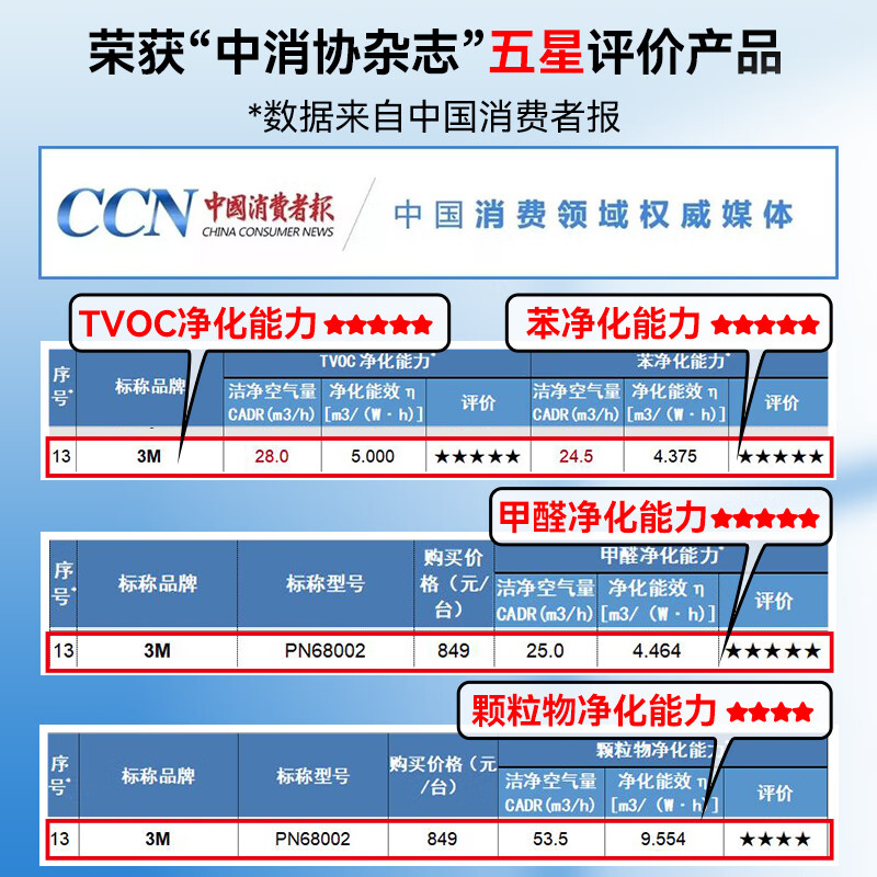 5、净化效果:看了消协的测评3M的各项指标都很能打而且价格合适在办公室用着过滤甲醛净化局部空气风力大小:自动模式几乎无感微微风高速的时候有微风放在桌面兼有电扇作用又不至于死吹得人难受外形外观:酷黑色科技感很强其他特色:滤网很好拿取加了个转换器就可以桌面用了