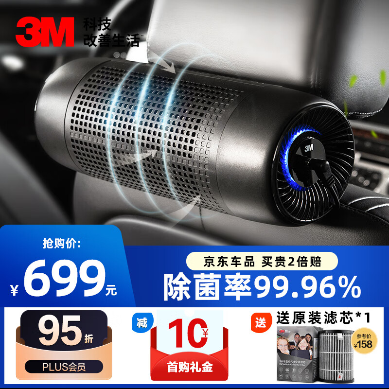 3M车载空气净化器 新汽车车内除甲醛pm2.5去异味除臭杀菌PN68002价格:699.00元!