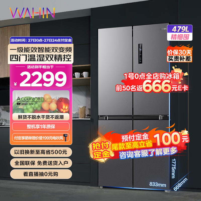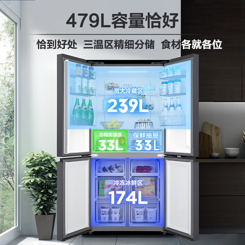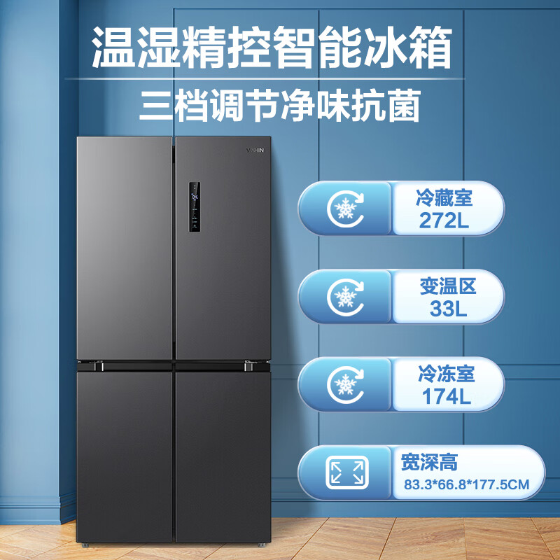 华凌479升一级能效双变频十字双开四开多门家用电冰箱超薄风冷无霜BCD-479WSPZH大容量冰箱价格:2399.00元!