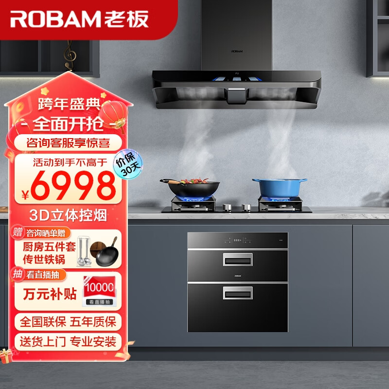 老板(Robam)抽油烟机厨房多件套 钢琴家D3S双腔变频24风量欧式家用灶具消毒柜三件套62D3S+57B2DT+XZ716A价格:6998.00元!