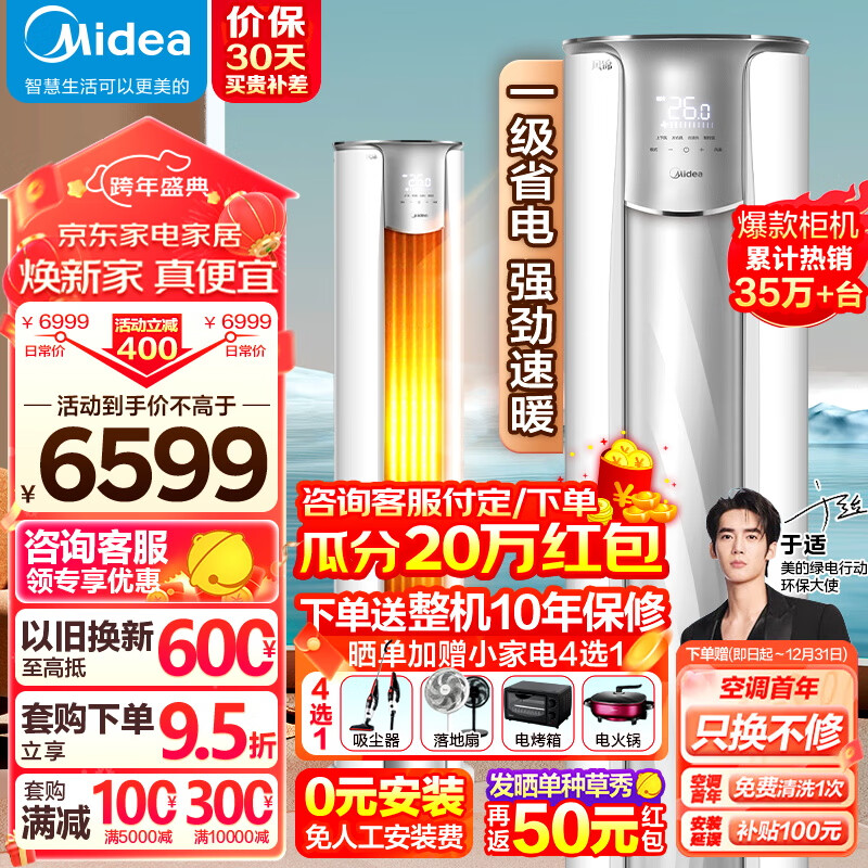 美的(Midea) 3匹 风锦 新一级能效变频冷暖 大风口自清洁 智能家电 家用客厅立式空调柜机 KFR-72LW/N8ZHB1价格:6599.00元!