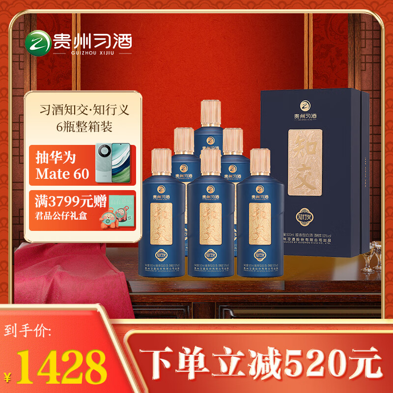习酒知交知行义 龙年 年货 酱香型白酒 53度 500ml*6 整箱装 过年送礼价格:2389.00元!