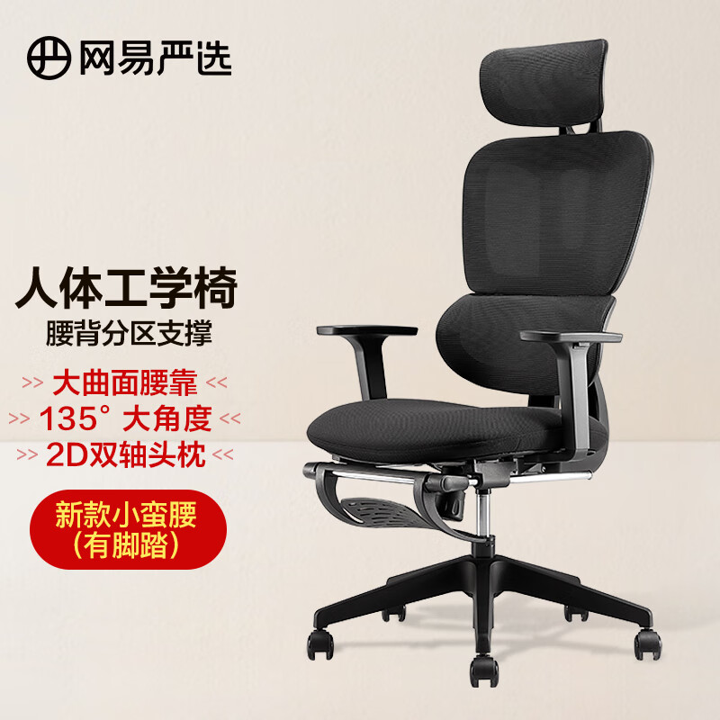 网易严选小蛮腰S5有搁脚 人体工学电脑椅办公椅电竞老板会议学习座椅凳子价格:899.00元!