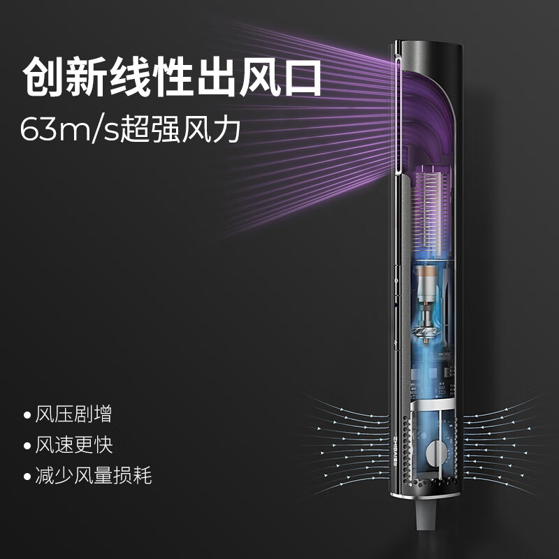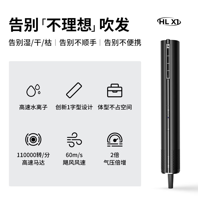 直白高速水离子吹风机 大风量轻柔速干滋养护发智能控温 电吹风棒低噪家用 HLX1价格:499.00元!