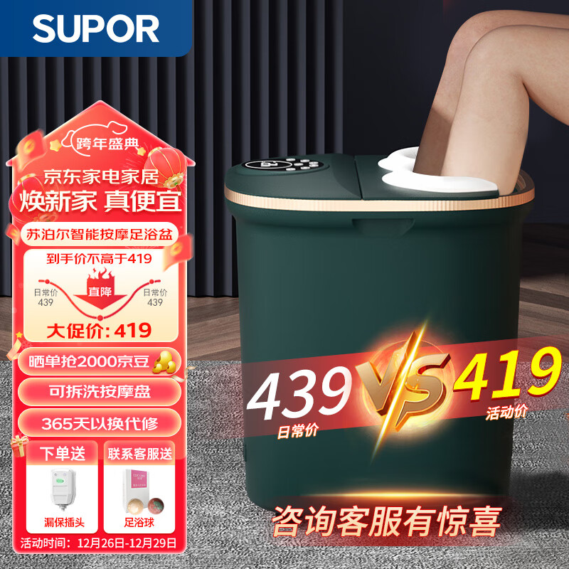 苏泊尔(SUPOR)泡脚桶足浴盆全自动熏蒸按摩智能洗脚桶恒温高深足浴桶家用洗脚盆节日礼物送女友送父母实用价格:529.00元!