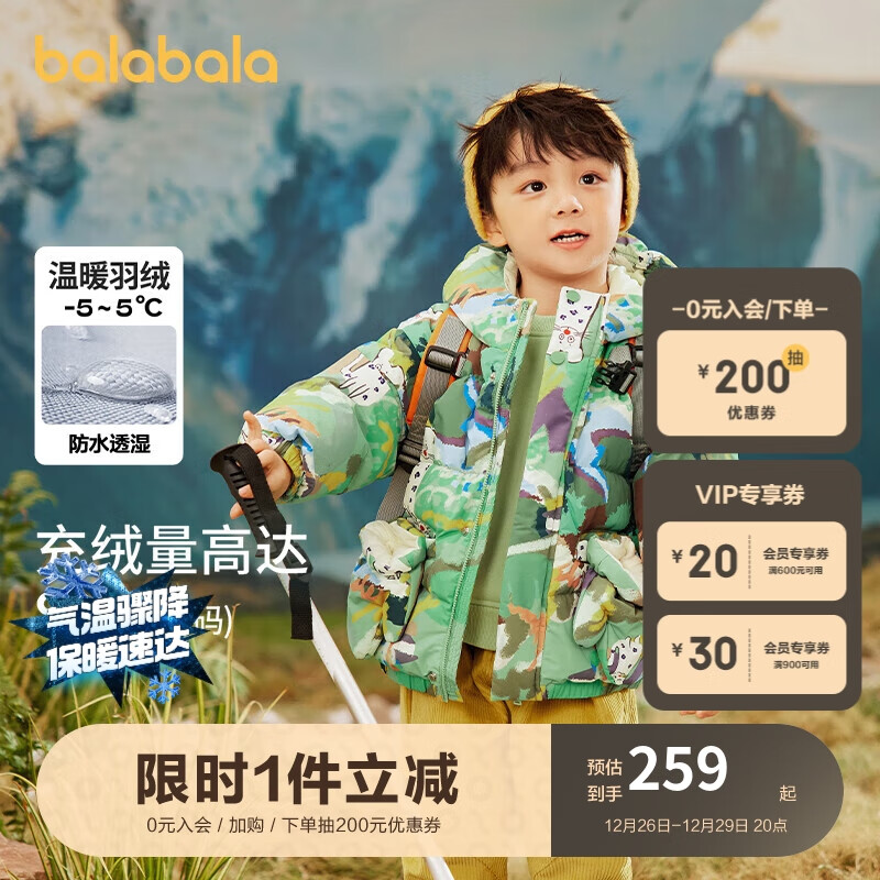 巴拉巴拉男童羽绒服女童外套2023冬童装儿童萌趣面包服潮价格:359.00元!