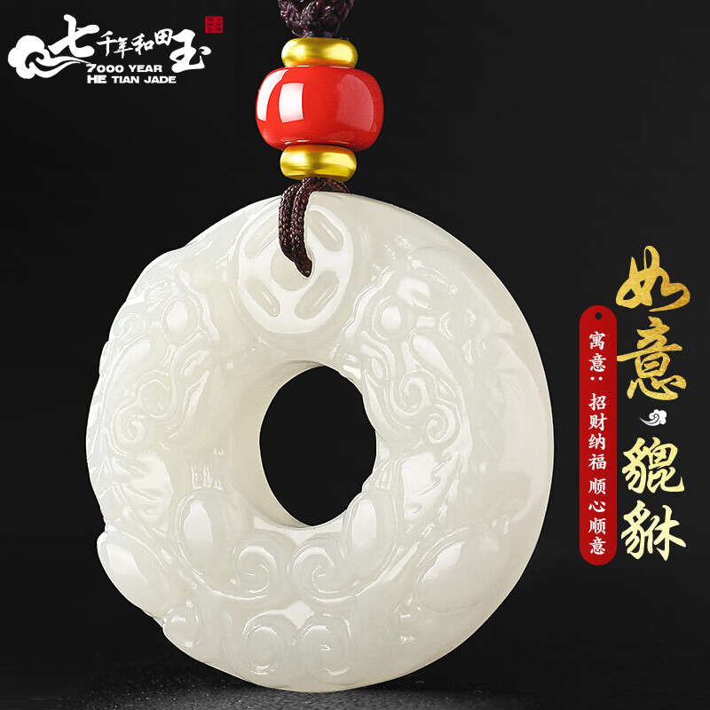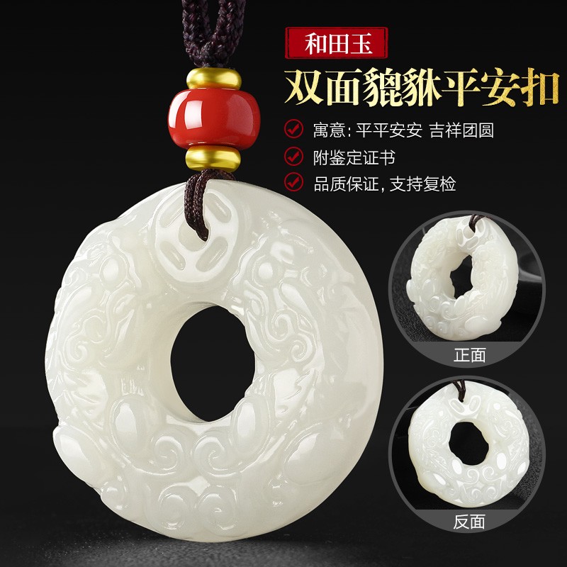 7000年【七夕情人节礼物】和田玉貔貅吊坠平安扣男女款玉坠 约32mm价格:298.00元!