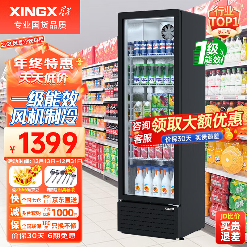 星星(XINGX)展示柜冷藏饮料柜一级能效单门立式冰柜商用保鲜冰箱风冷直冷超市便利店陈列柜啤酒水果柜 风直冷减霜1级能效222升 LSC-230FYPE价格:1399.00元!