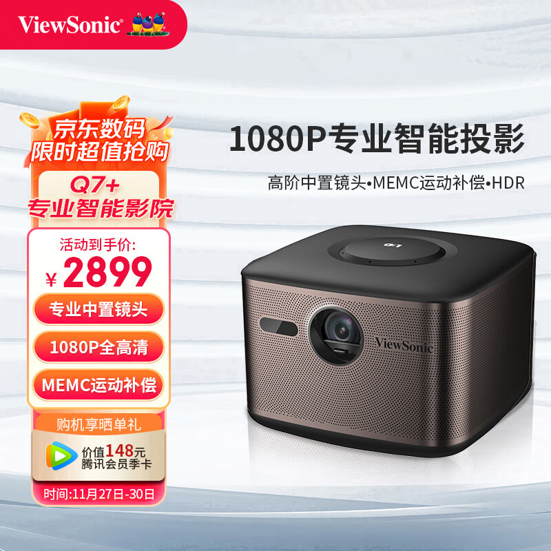 优派 Q7+ 投影仪 京东小家智能生态 投影机卧室 智能家庭影院 手机同屏(1080P全高清 中置镜头 运动补偿)价格:2999.00元!