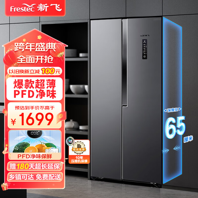 新飞(Frestec)450升超薄双变频一级对开门双开门冰箱超大容量多维风冷无霜电脑控温冰箱BCD-450WK9ET价格:1699.00元!