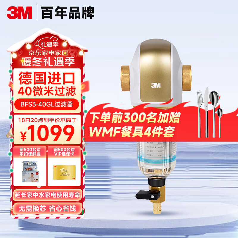3M净水器家用 前置过滤器 自来水管全屋前置BFS3-40GL【德国进口无需换芯】价格:1299.00元!