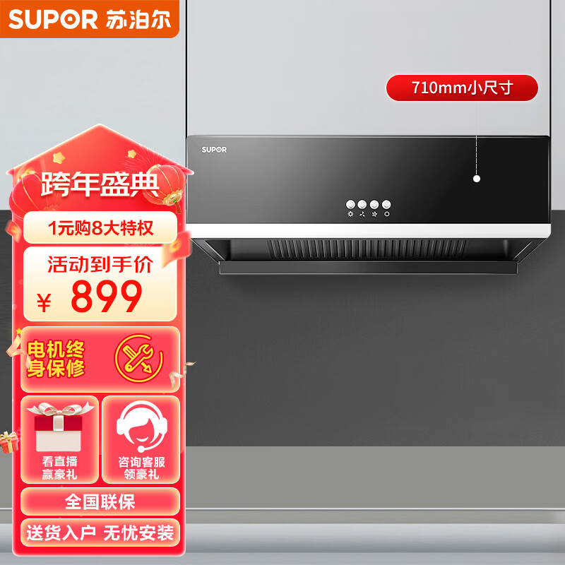 苏泊尔(SUPOR) 抽油烟机 中式厨房家用大吸力脱排吸油烟机 710mm尺寸 顶吸大吸力油烟机 CXW-218-Z1D价格:899.00元!