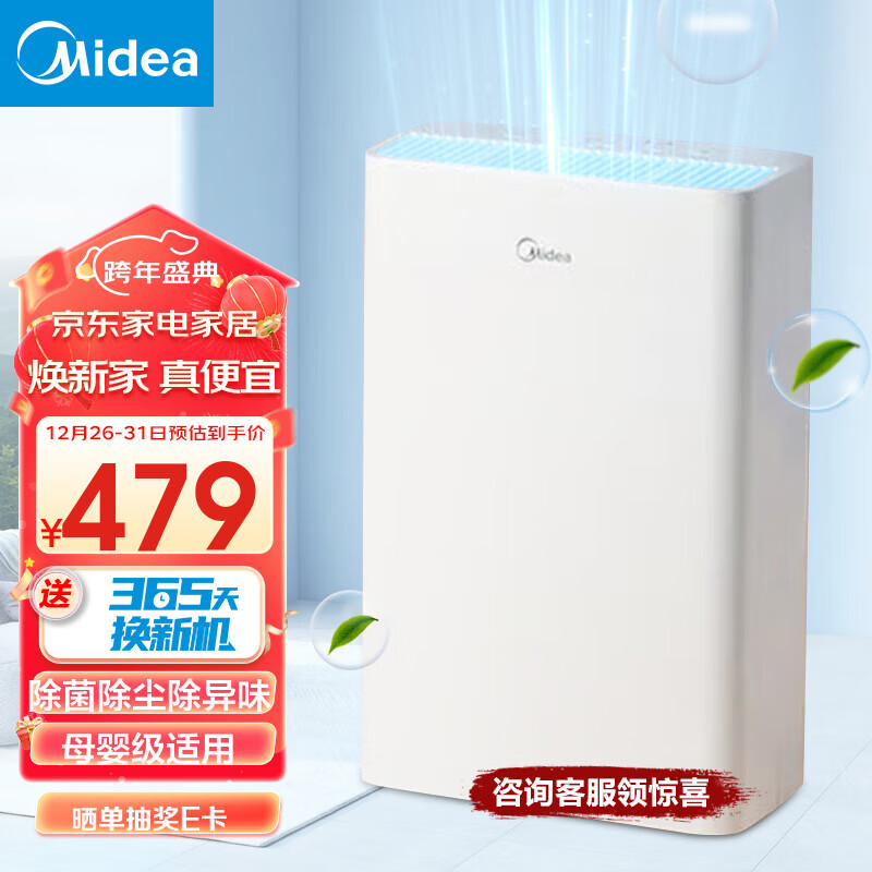 美的(Midea) 空气净化器除甲醛新风机家用小型负离子空气净化除雾霾烟味卧室换气除灰尘粉尘吸猫毛空气消毒机 【检测PM2.5】KJ230G-D46价格:499.00元!