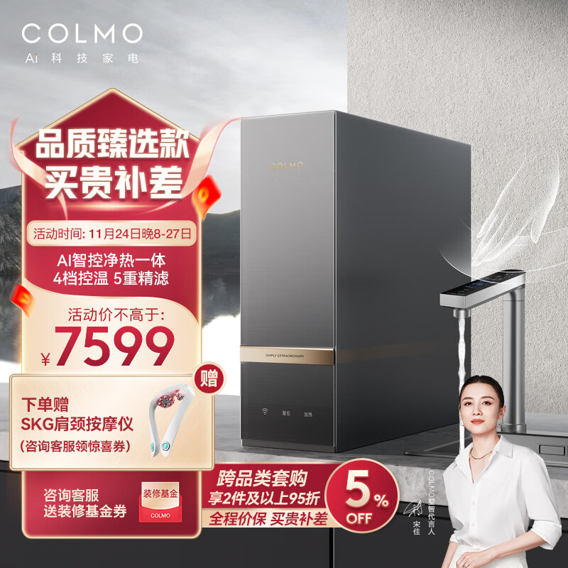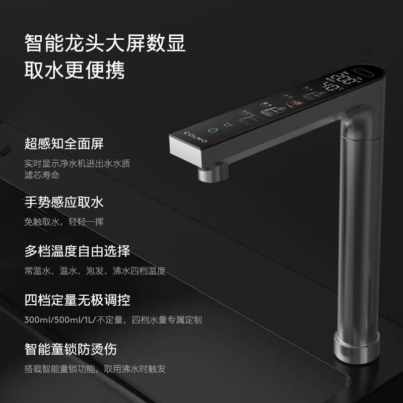 COLMO净水器RB117 家用净水机厨下式净热一体机 挥手智控双出水智能龙头 4档控温 五重净滤价格:7599.00元!