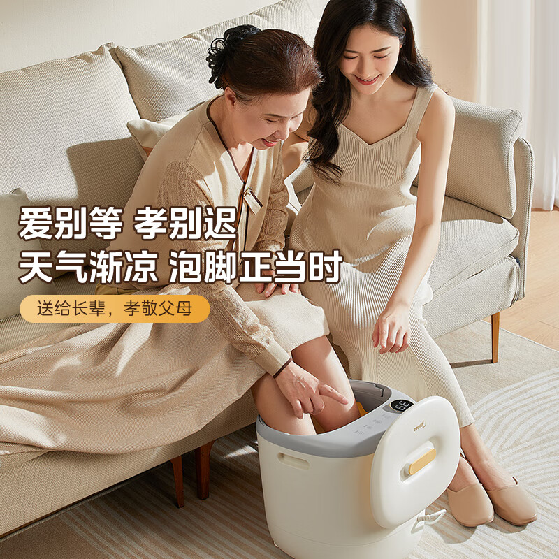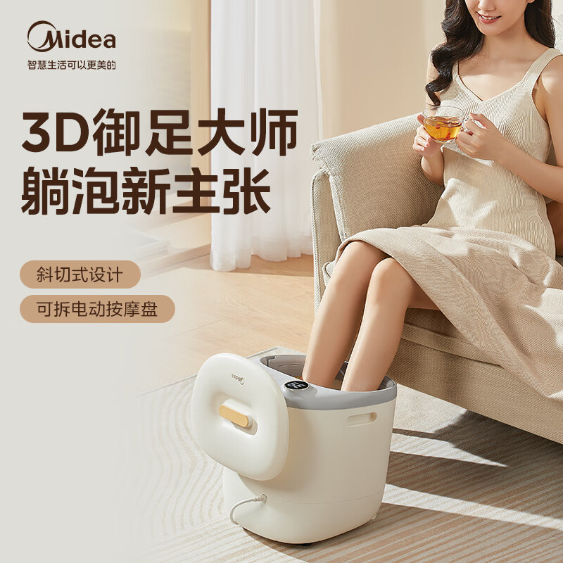 美的泡脚桶足浴盆全自动按摩洗脚盆智能电动加热恒温定时冬季送长辈父母圣诞新年生日礼物女生ZL1 电动按摩+防漏电保护【暖阳白】价格:499.00元!
