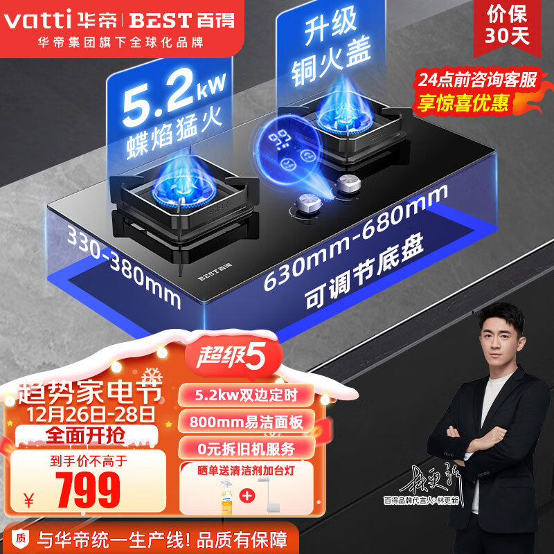 百得(BEST)华帝出品燃气灶 煤气灶双灶 家用炉具 5.2KW大火力 定时灶 嵌入式台式全进风炉具JZT-QE61(天然气)价格:759.00元!