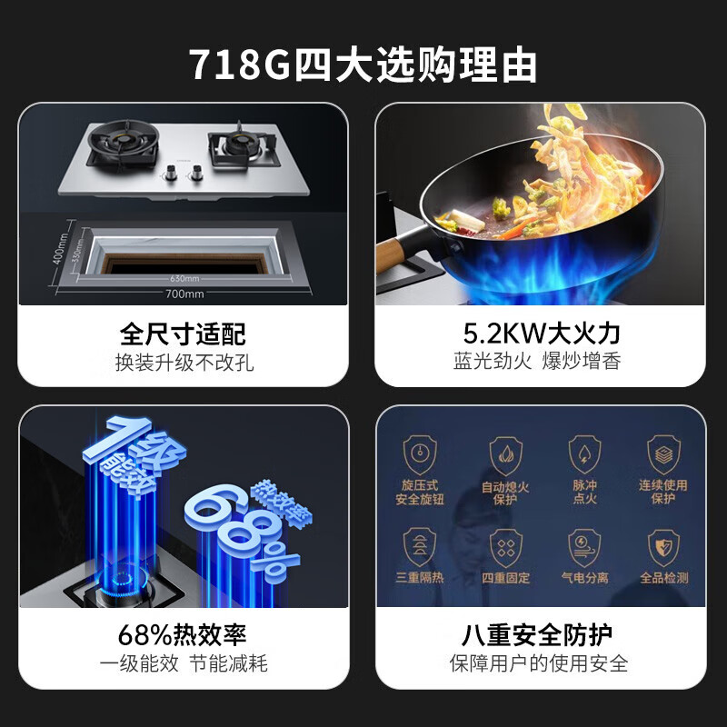 此款德意718G满意的,价格也很合理的。火力很猛,都是蓝火,质感也很好,买了不锈钢面板的,原来尺寸已经开好,这个刚刚好