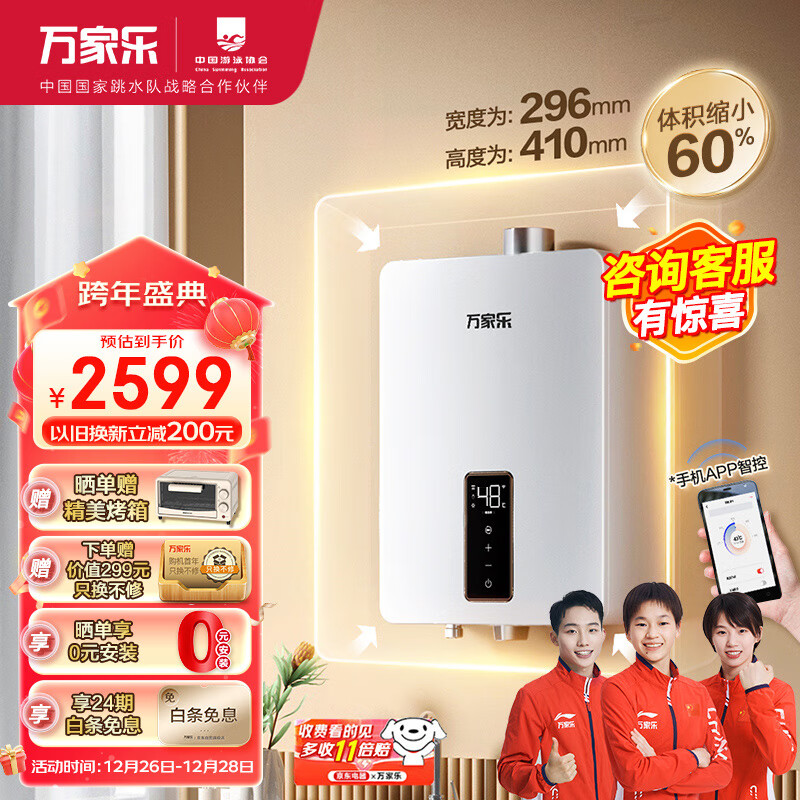 万家乐 16升燃气热水器恒温天然气下置风机A3纸小体积四季随温感APP智控智能防冻JSQ30-16RS20价格:2599.00元!