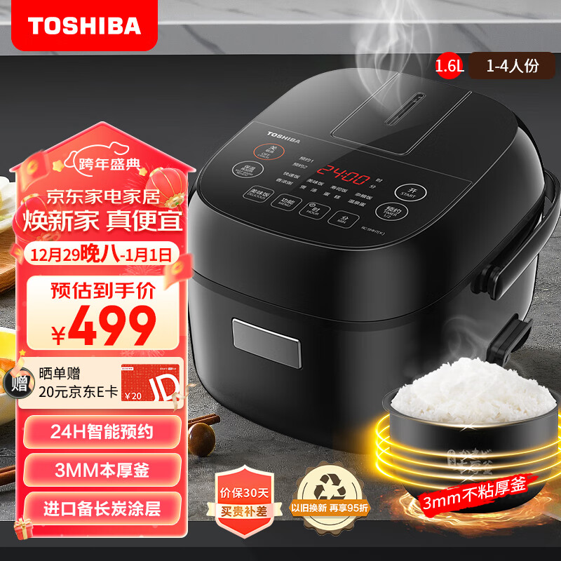 东芝(TOSHIBA) 电饭煲 迷你电饭锅小1.6升2-3人智能预约多功能家用饭煲 5MHT价格:549.00元!