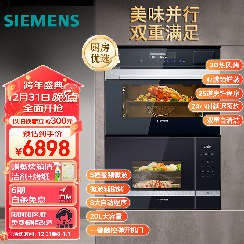 西门子(SIEMENS)微波炉嵌入式蒸烤箱一体机套装智能蒸汽烤箱蒸箱二合一BE525+CS389价格:9999.00元!
