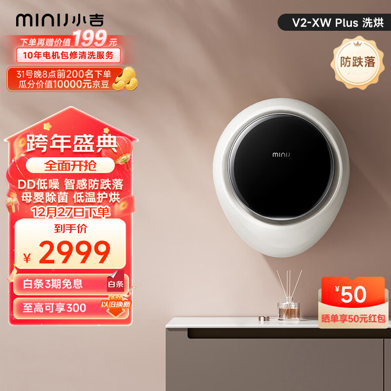 小吉(MINIJ)变频壁挂洗烘一体洗衣机 迷你母婴洗衣机 APP操控全自动滚筒除菌烘干机V2-XW 以旧换新价格:2999.00元!