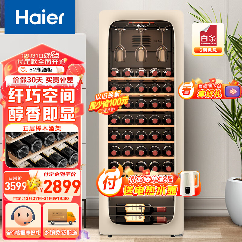 海尔(Haier)象牙米52瓶风冷红酒柜冷藏恒温酒窖级家用客厅恒温柜WS052WGHSY1价格:2899.00元!