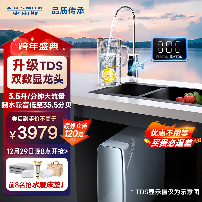 史密斯(A.O.SMITH)佳尼特蓝鲸净水器家用厨下式直饮净水机3.5升/分钟专利MAX5.0反渗透 0陈水 CR3500AB1 以旧换新价格:4099.00元!
