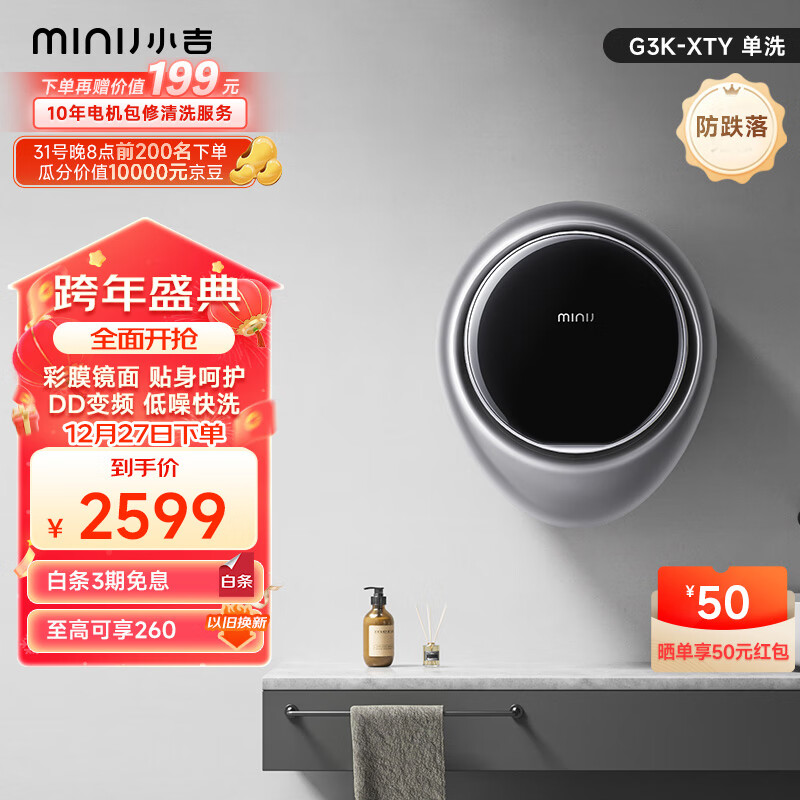 小吉(MINIJ)彩膜智慧大屏壁挂 迷你滚筒洗衣机全自动 DD直驱变频 专属母婴洗衣机 G3K-XTY价格:2599.00元!