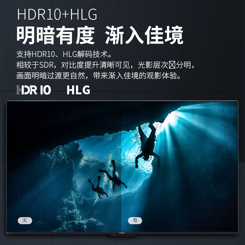 5、冲着夏普这个品牌买的,一如既往的惊艳!画质清晰!超级大屏看电影,打游戏爽爽爽!