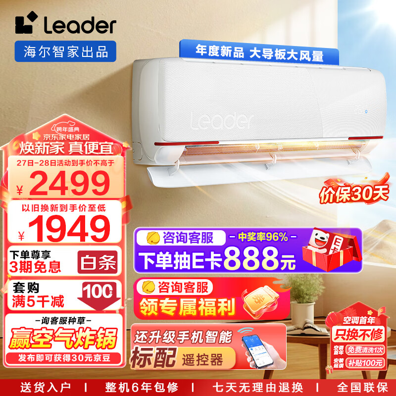 Leader海尔智家出品 1.5匹挂机新一级变频 自清洁壁挂式空调KFR-35GW/03LKC81TU1 以旧换新价格:2499.00元!