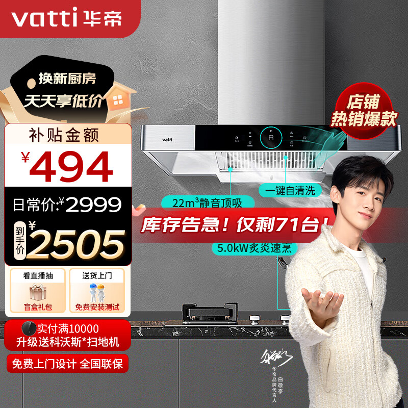 华帝(VATTI)抽油烟机家用静音大吸力烟机燃气灶烟灶套装22风量自动清洗欧式吸油烟机灶具套装i11143天然气价格:2505.00元!