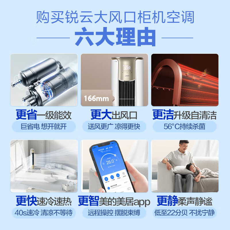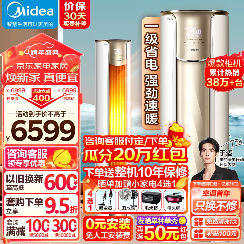 美的(Midea)3匹 锐云 新一级能效变频冷暖 大风口自清洁 智能家电 家用客厅立式空调柜机 KFR-72LW/N8XHA1价格:6599.00元!