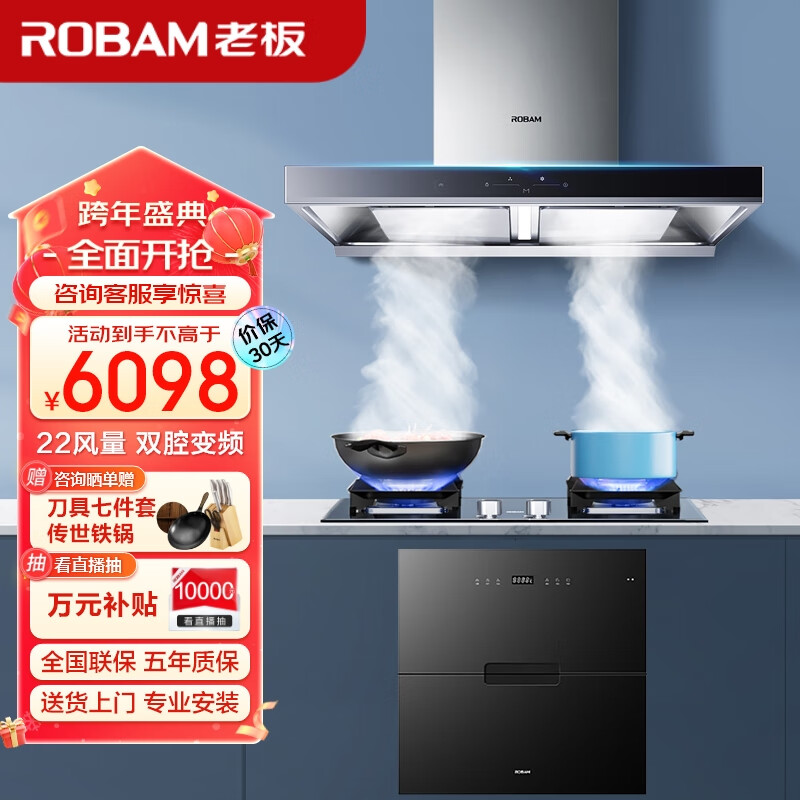 老板(Robam)抽油烟机厨房多件套 欧式变频双腔22风量家用燃气灶灶具消毒柜烟灶消60D1S+57B2DT+XB710A价格:6098.00元!