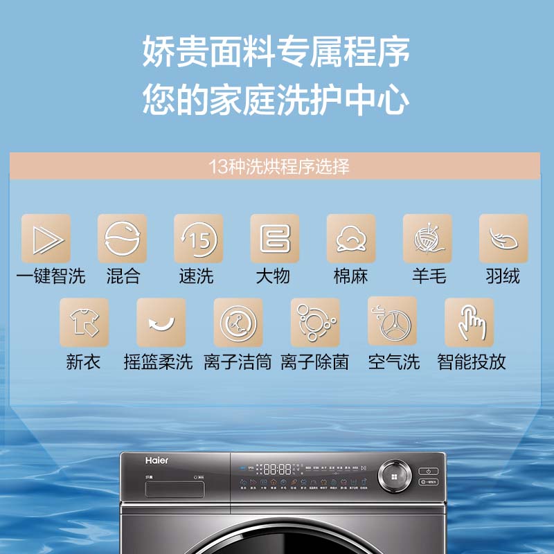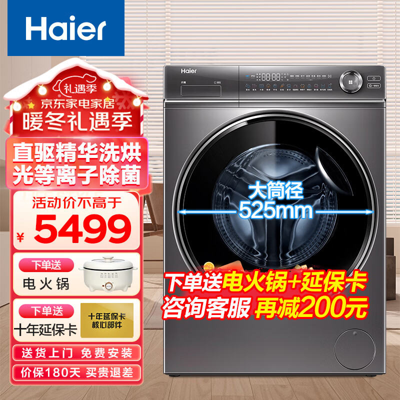 海尔(Haier)【精华洗】10公斤滚筒洗衣机直驱变频全自动大容量光等离子除菌智能投放洗烘一体机388HBD[家电]价格:5999.00元!