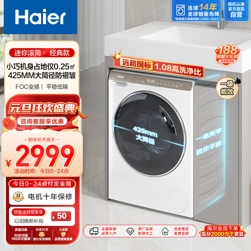 海尔(Haier)迷你滚筒洗衣机全自动 3.5KG超薄平嵌 儿童洗衣机婴儿洗衣机小型内衣洗95℃高温除菌XQGM35-B80CU1价格:2999.00元!