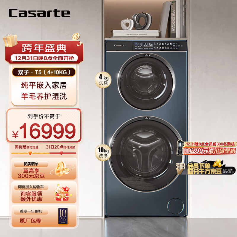 卡萨帝(Casarte)【双子T5】滚筒分区洗衣机全自动 14公斤洗烘一体机直驱变频 呼吸窗换新风 双筒分区C8 HDN14L5EU1价格:16999.00元!