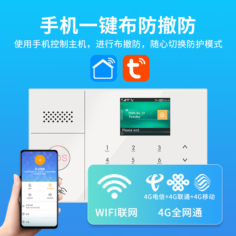 凌防(LFang)AE-108-GSM 家用防盗报警器红外线感应门窗安防系统现场无线声光APP布撤防短信电话远程通知价格:389.00元!