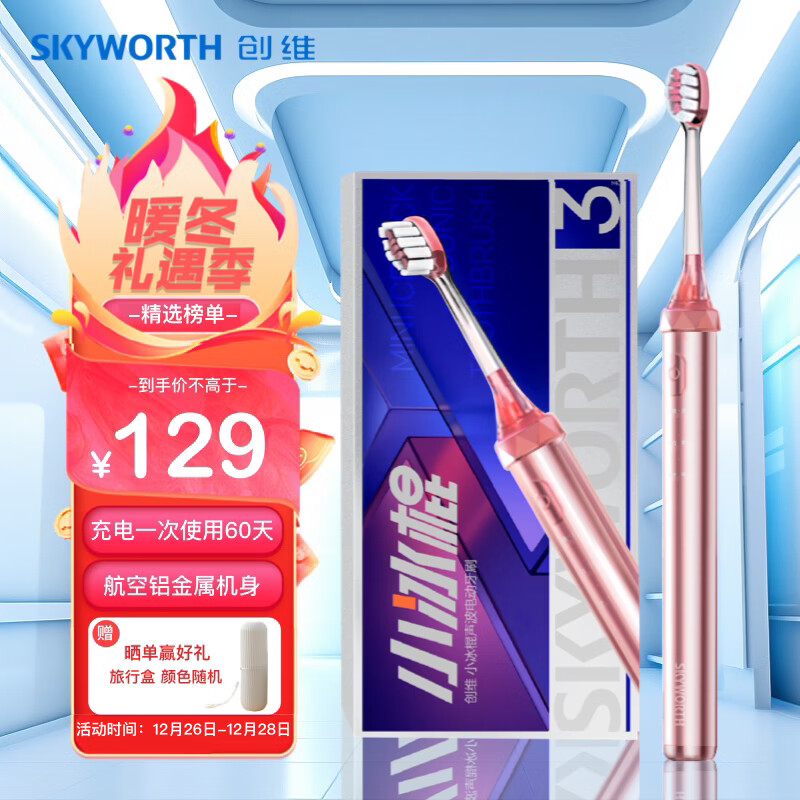 创维小冰棍电动牙刷 成人声波震动电动牙刷 情侣款送男友/送女友 玫瑰金BG31价格:129.00元!
