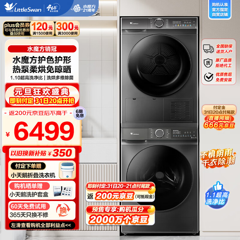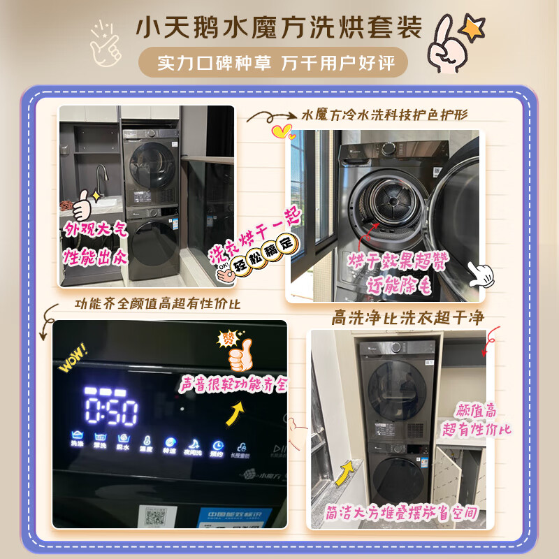 小天鹅(LittleSwan)水魔方洗烘套装 10KG滚筒洗衣机全自动+热泵烘干机【86升级款】除菌除螨 1.1洗净比TG100V618T+617价格:6698.00元!