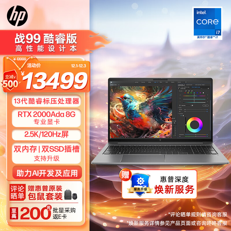 惠普(HP)战99 23款新15.6英寸高性能笔记本电脑设计师本工作站13代英特尔酷睿i7-13700H 32G 1TSSD RTX2000Ada 2.5K屏价格:13499.00元!