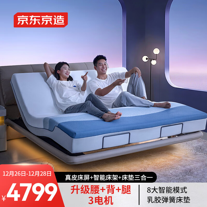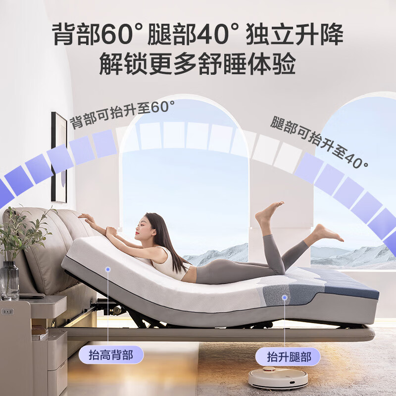 京东京造真皮悬浮智能床 电动升降|多功能|零重力 主卧双人床1.5×2米BE02价格:5299.00元!