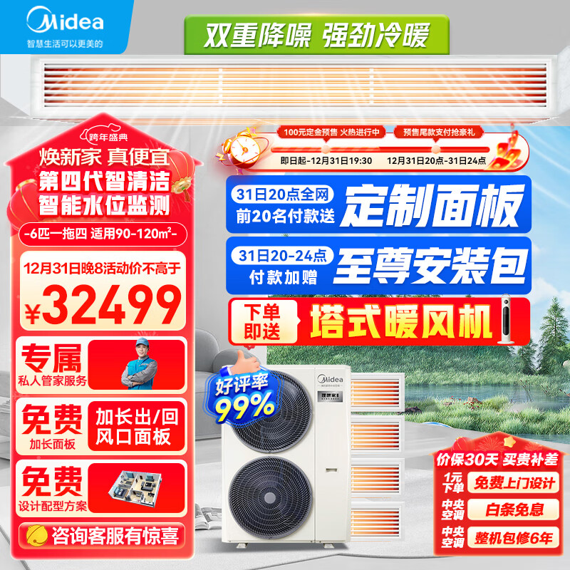 美的(Midea)中央空调一拖四风管机6匹小多联机理想家三代一级能效快速冷暖智能清洁MJV-140W-E01-LXⅢ价格:32598.00元!