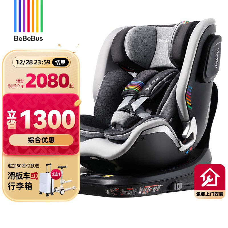 bebebus儿童座椅领航家汽车用0-8岁婴儿宝宝车载360度旋转 千岩灰价格:3380.00元!
