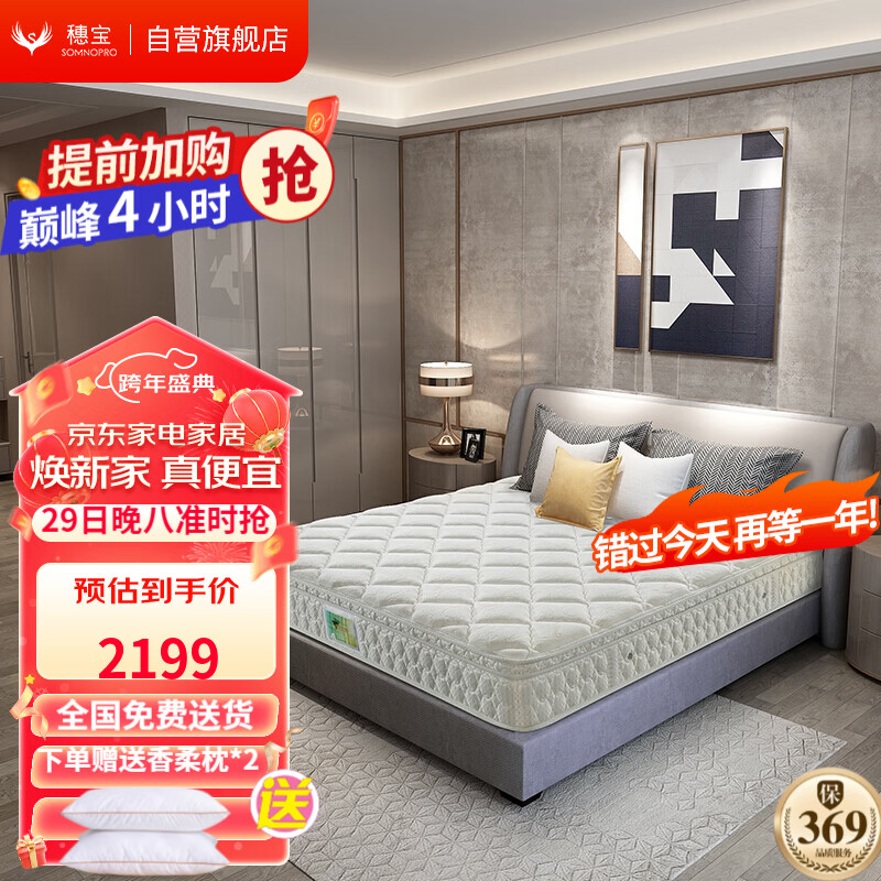 1、穗宝床垫已经第二次购买了,上次给孩子买的,收到非常好。这次又回购一个1.8乘2米的。京东物流非常快,下单没几天就送到了。这么大还送货上楼。价格经济实惠,百亿补贴购买。真是太实惠了。强烈推荐购买穗宝床垫。物超所值。