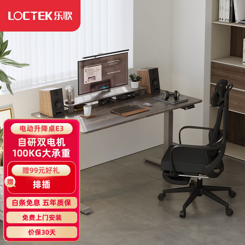 乐歌电动升降桌电脑桌双电机站立办公家用书桌 E3/1.8m灰胡桃木色套装价格:2339.00元!