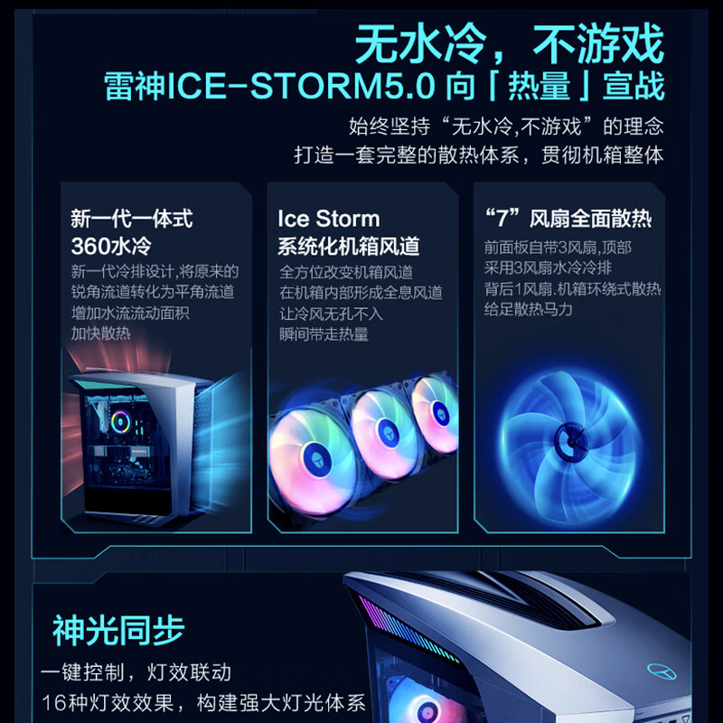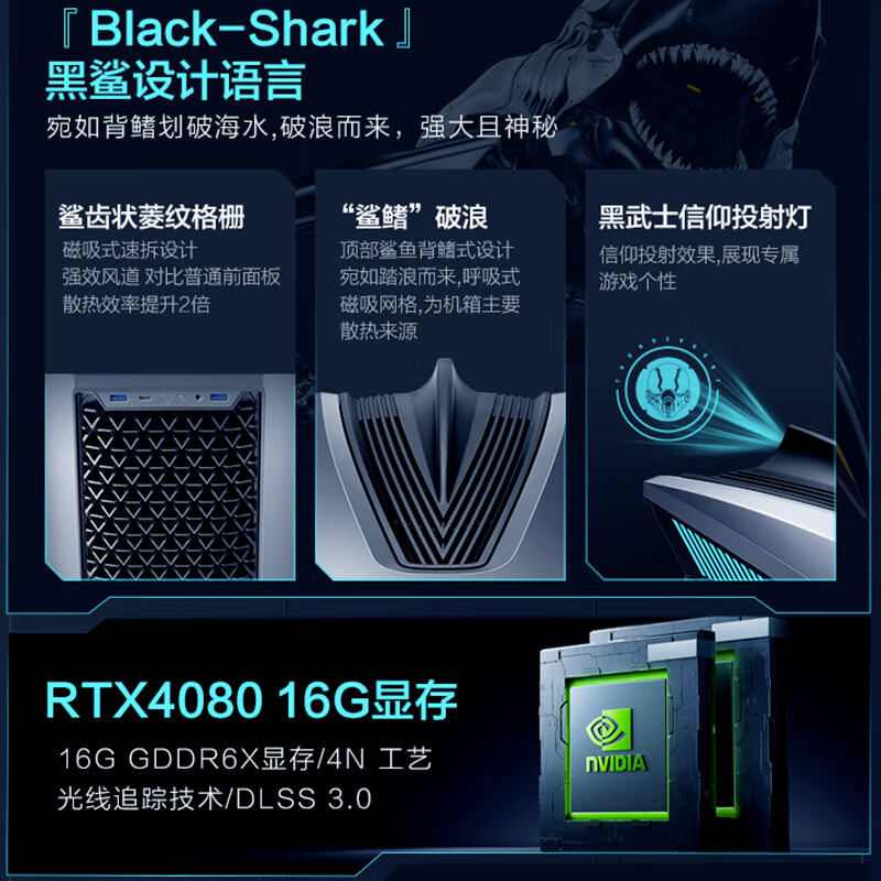 雷神(ThundeRobot)黑武士·Shark水冷游戏台式电脑电竞主机(13代i7-13700K 32G RTX4080 1TSSD+4T 360水冷)价格:18999.00元!
